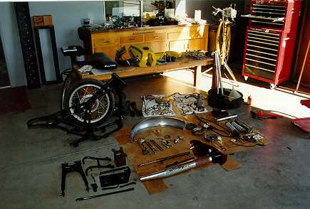 The pictures below show various steps of the teardown, rebuilding & final restoration process of this original Metralla. This bike is now complete and running.