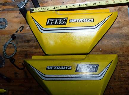 This is a picture of the original sidecovers. We knew that we were going to repaint the tank and sidecovers and these decals were NOT available.... so we had several sets made. (See below)