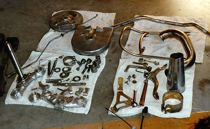 The above are the rebuilt, rechromed, replated, refinished, powdercoated parts (except for the tank and sidecovers) waiting assembly.....